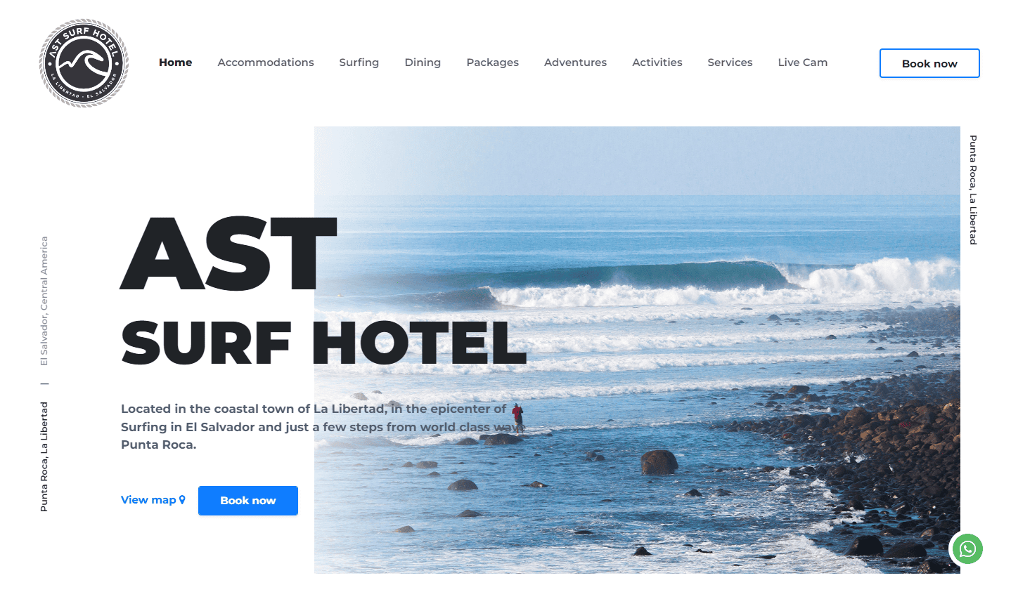 We designed and developed the website for AST Surf Resort, a hotel in El Salvador that blends relaxation, adventure, and surf lessons.