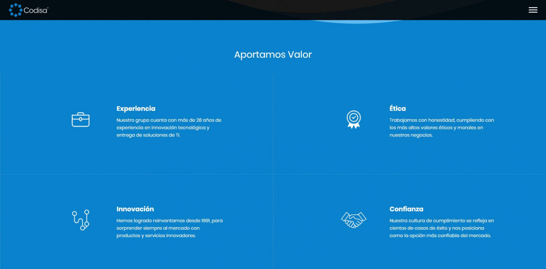Translating Codisa’s extensive portfolio of technological solutions into a web structure that’s accessible and easy to navigate without overwhelming the user.