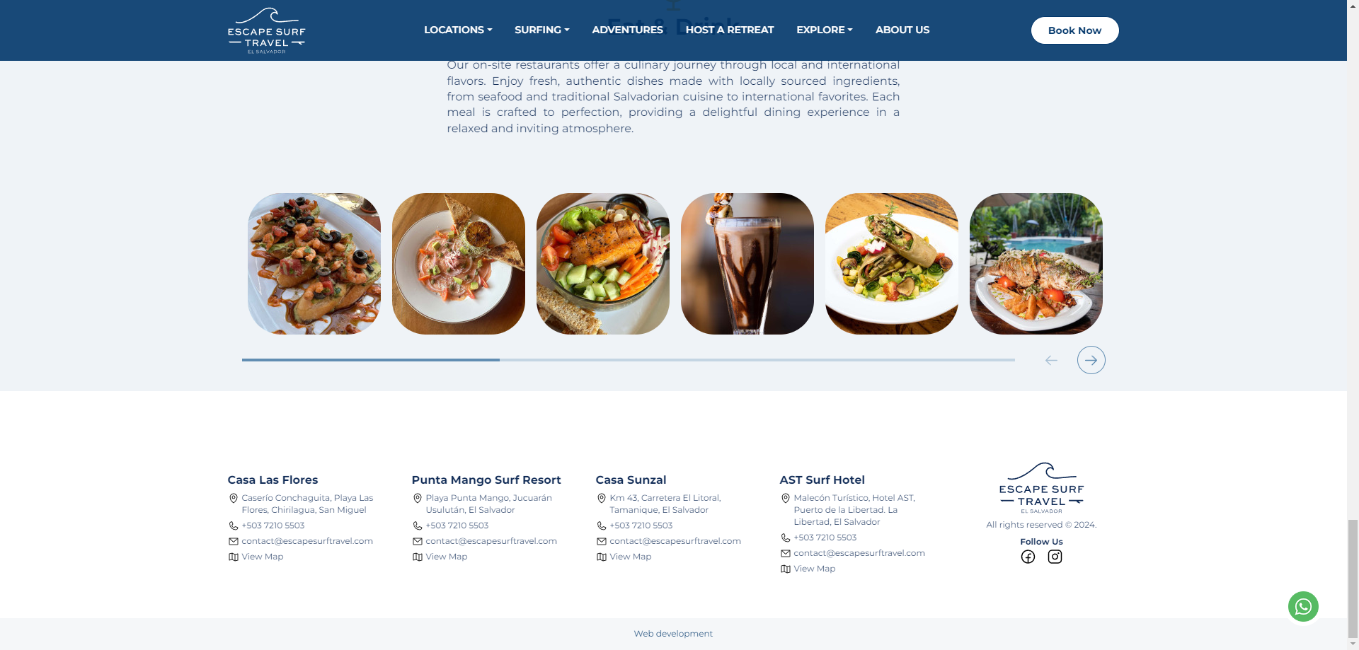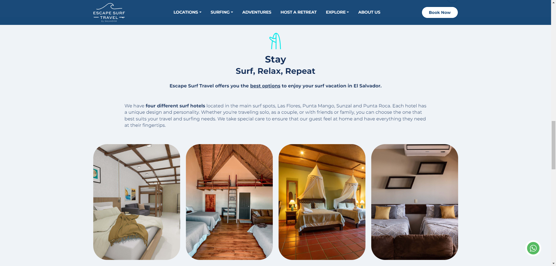 Escape Surf Travel developed a web platform designed to deliver a complete experience for surf lovers. The platform not only allows users to book exclusive accommodations at the best surf spots in El Salvador, but also serves as a comprehensive travel guide. Users can access detailed information about accommodations, destinations, and related services—all in one place. With a modern design and user-friendly interface, the platform simplifies the process of finding and booking trips, offering a seamless and personalized experience.